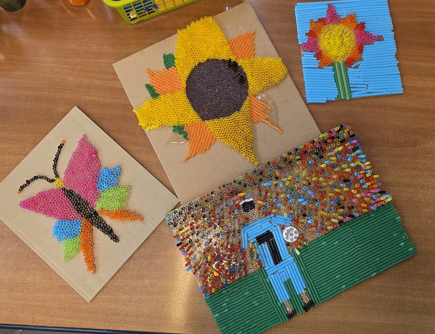 - obrazki ze słomek plastikowych,